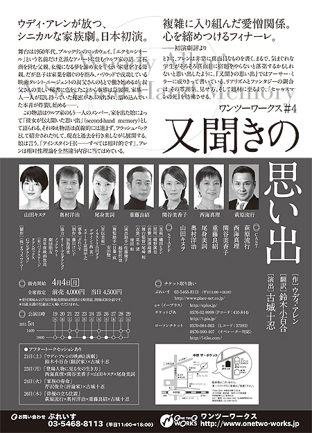 [スタッフ] 美術=礒田ヒロシ 照明=磯野眞也 音響=黒澤靖博 舞台監督=尾崎 裕